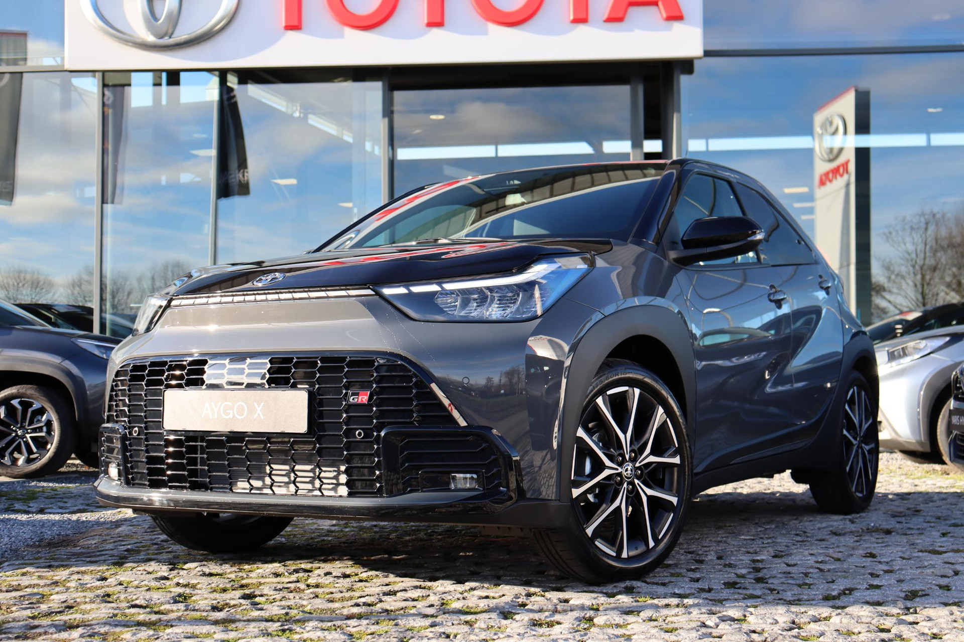 Toyota AYGO X Hybrid 115 In de GR Sport uitvoering in de kleur Storm Gray . Deze GR Aygo X is net op de markt en rijk uitgerust! Zo heeft deze Aygo Parkeersensoren voor en achter, Parkeercamera, JBL Audio met in de achterbak een Sub woofer! Keyless Entry, Automatisch inklapbare buitenspiegels En nog veel meer!