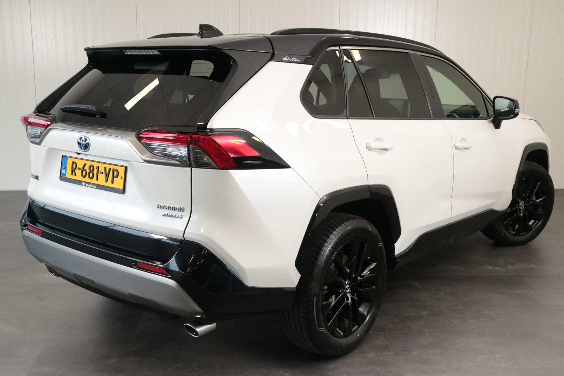 RAV4 2.5 Hybrid AWD Style Bitone in de kleur Parelmoer wit met zwart dak. Deze RAV4 is voorzien van alarm, parkeersensoren voor en achter, navigatie, stoel en stuurverwarming, koplampsproeiers, apple carplay, android auto, adaptieve cruise control, reservewiel, voorruitverwarming (onderzijde) en meer!