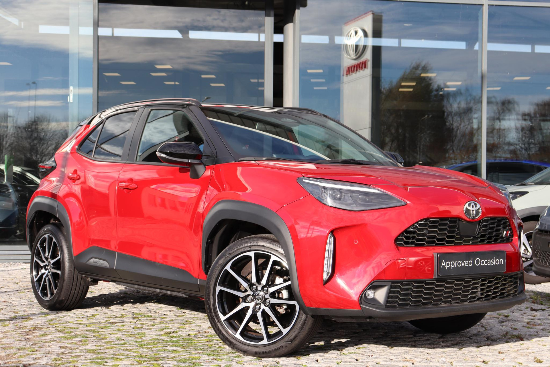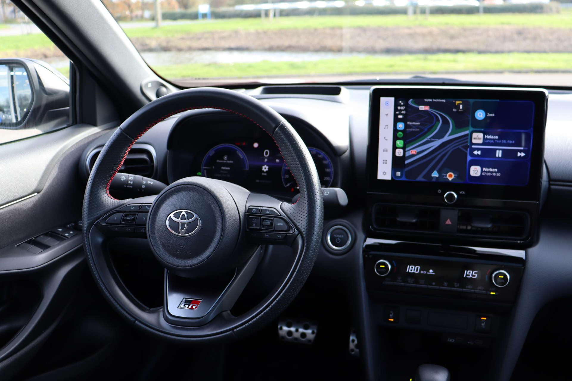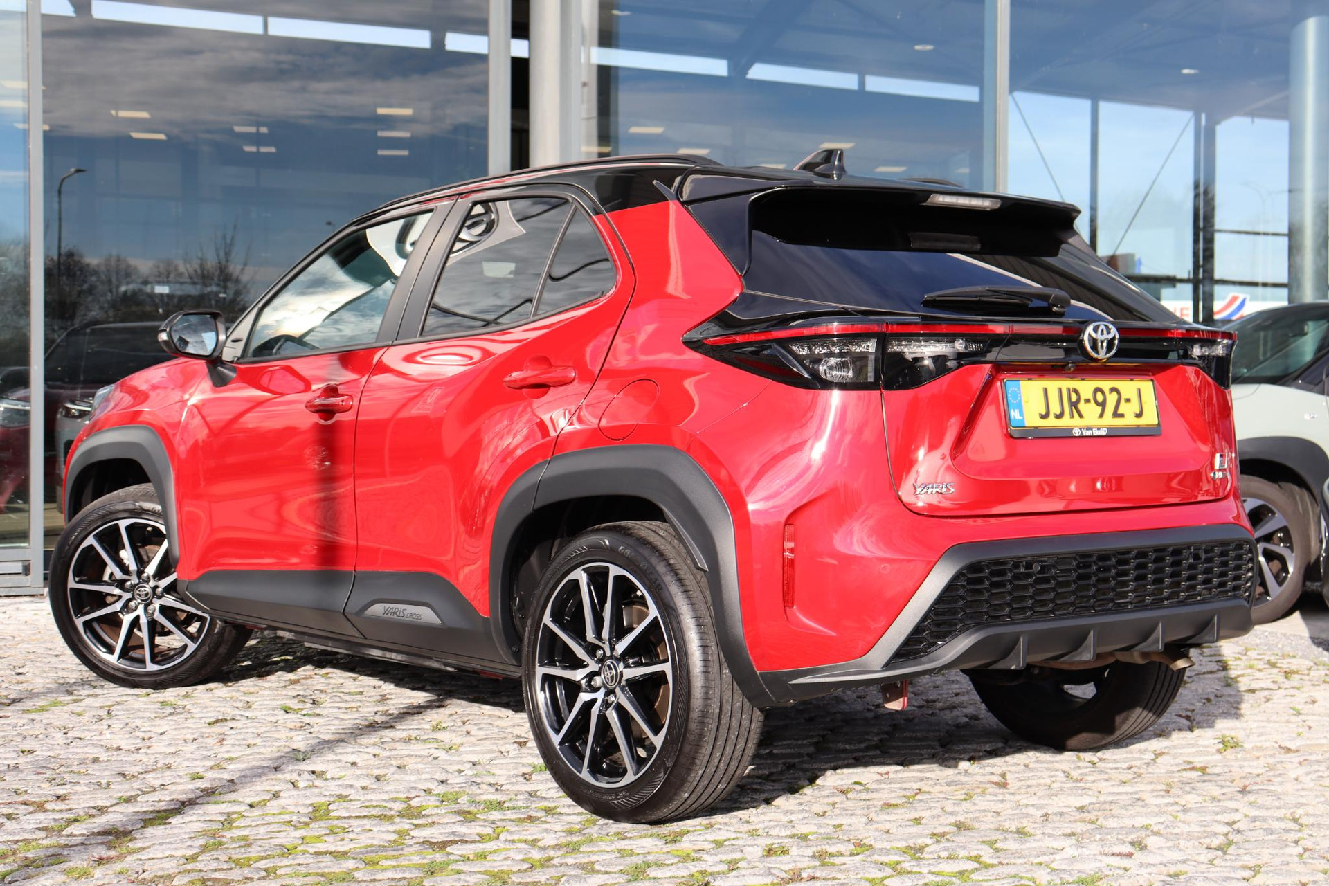 Prachtige Yaris Cross 130 GR Sport Limited in de kleur Emotional Red met zwarte bovenzijde. Deze Cross is voorzien van het GR Pack met o.a Panoramadak, Head up Display JBL Audio, Handmatig zonnescherm. Zo heeft de auto ook, parkeersensoren voor en achter, blind spot monitor, Draadloze Apple Carplay, Android auto, Draadloze telefoonoplader, Stoelverwarming voor, Een elektrische achterklep, prachtige GR accenten en de GR lichtmetalen velgen.
