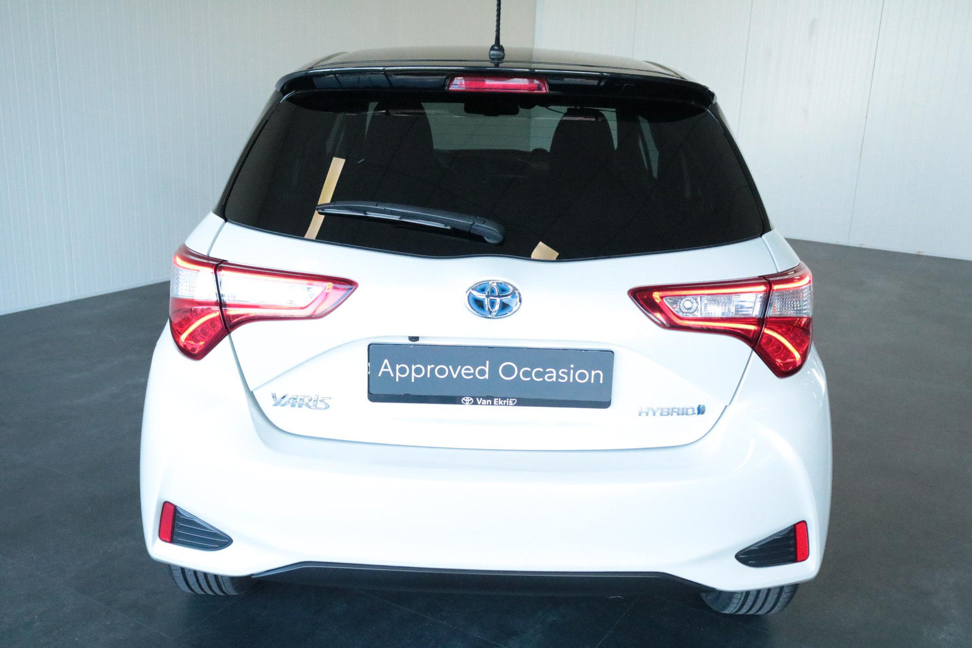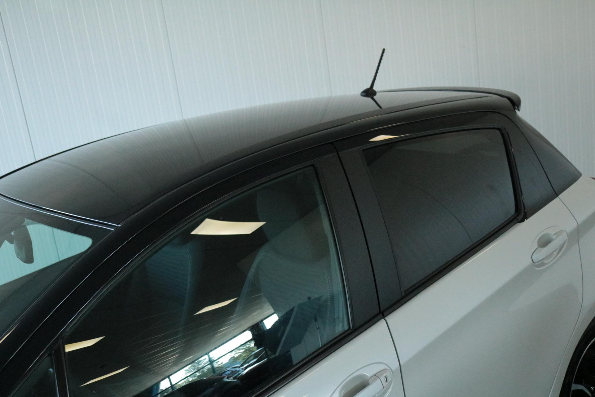 Yaris 1.5 Hybrid Bitone in de kleur parelmoer wit met zwarte bovenzijde. Voorzien van cruise control, Toyota safety sense, Elek.inklapbare buitenspiegels, parkeercamera, 16 inch lichtmetalen velgen, parkeersensoren, dubbele kofferbakbodem voor en meer!
